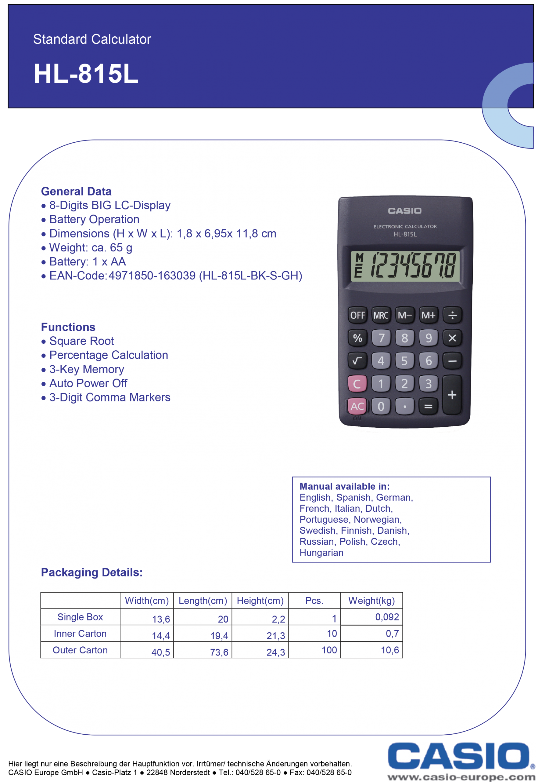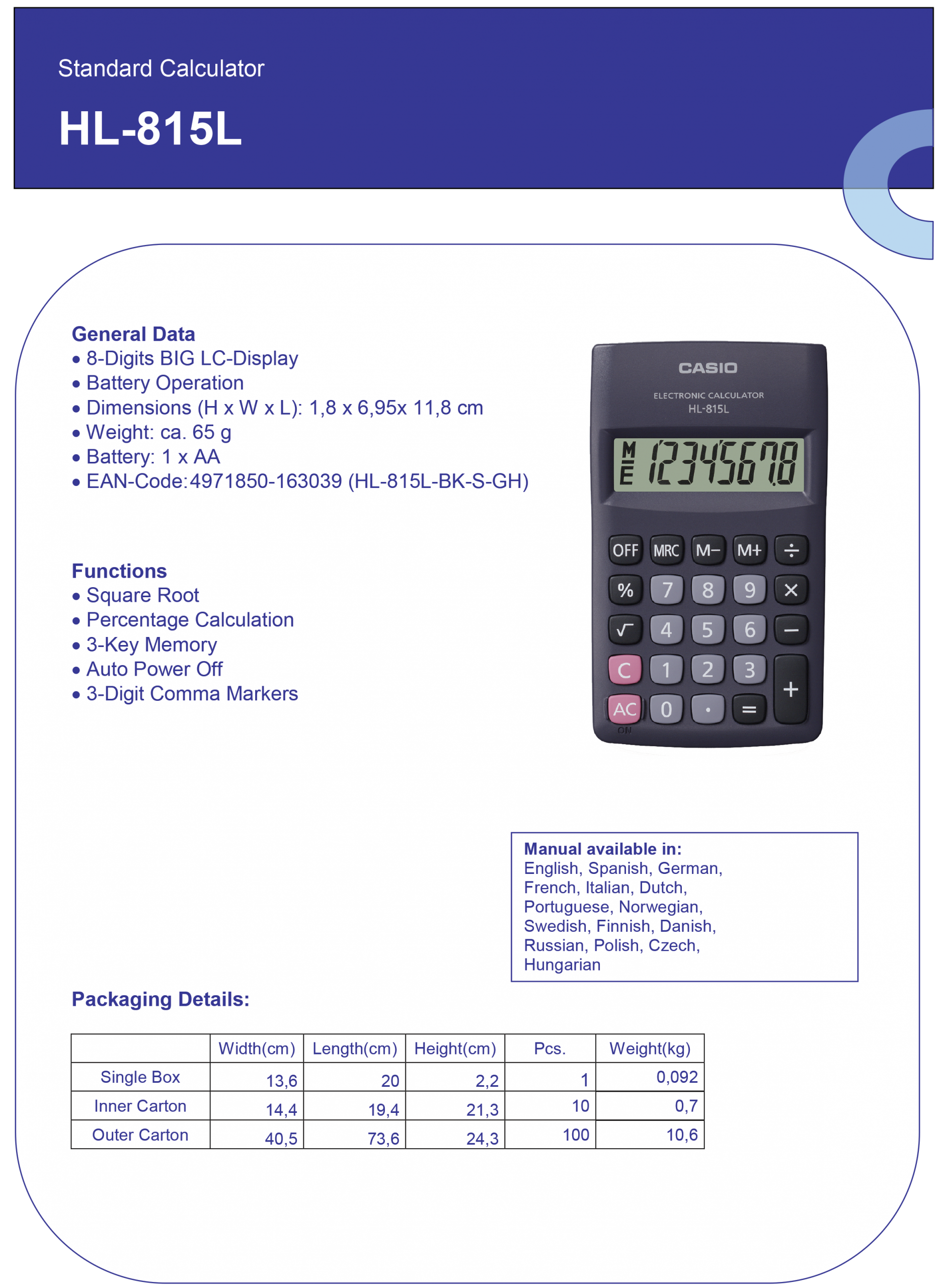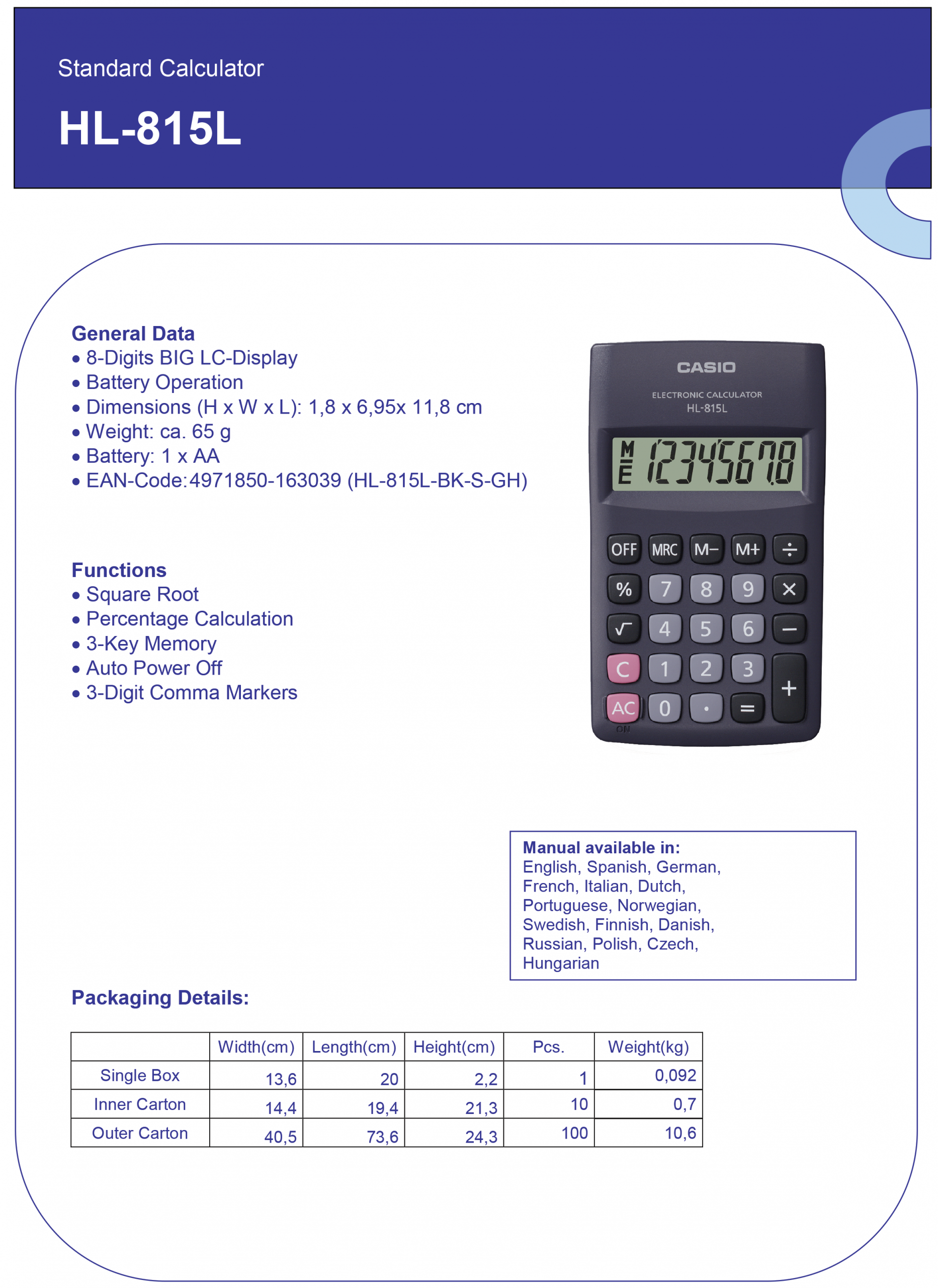 DŽEPNI KALKULATOR CASIO HL815