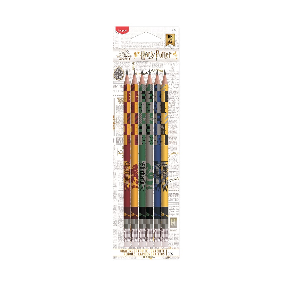 - Grafitne olovke sa motivima škola iz filma o Hariju Poteru: Griffindor, Hufflepuff, Ravenclav, Slitherin.
